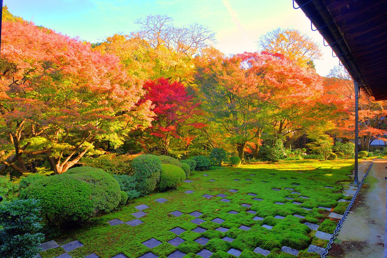 西庭の大市松を受けてさらに小さな姿となり、そして東北方向の谷に消えていくという表現方法の庭です。