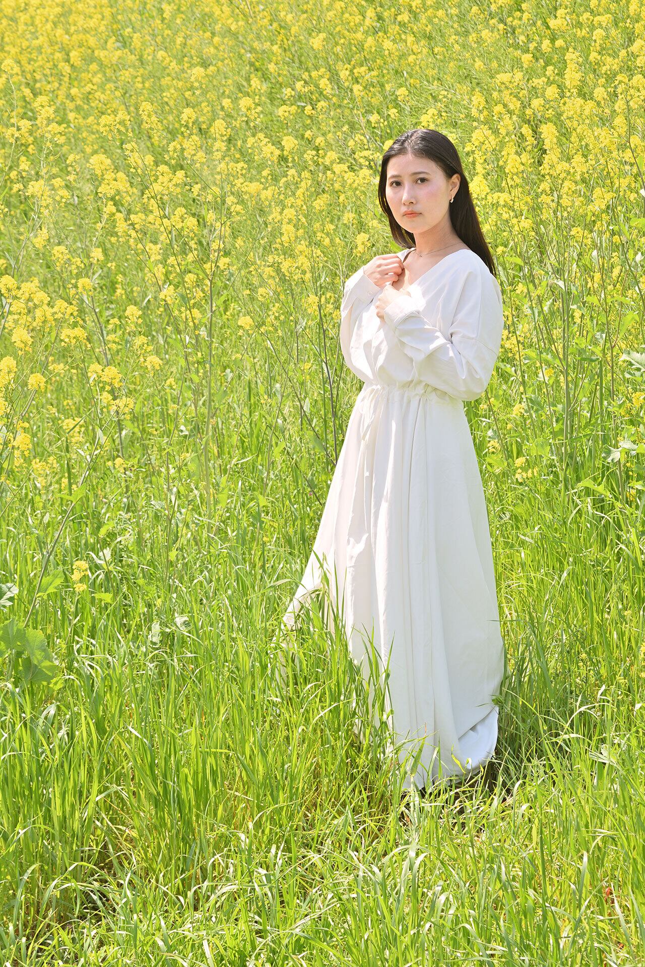 伏見桃山の上原実祐。松本酒造近くの新高瀬川沿いの堤防の菜の花畑。