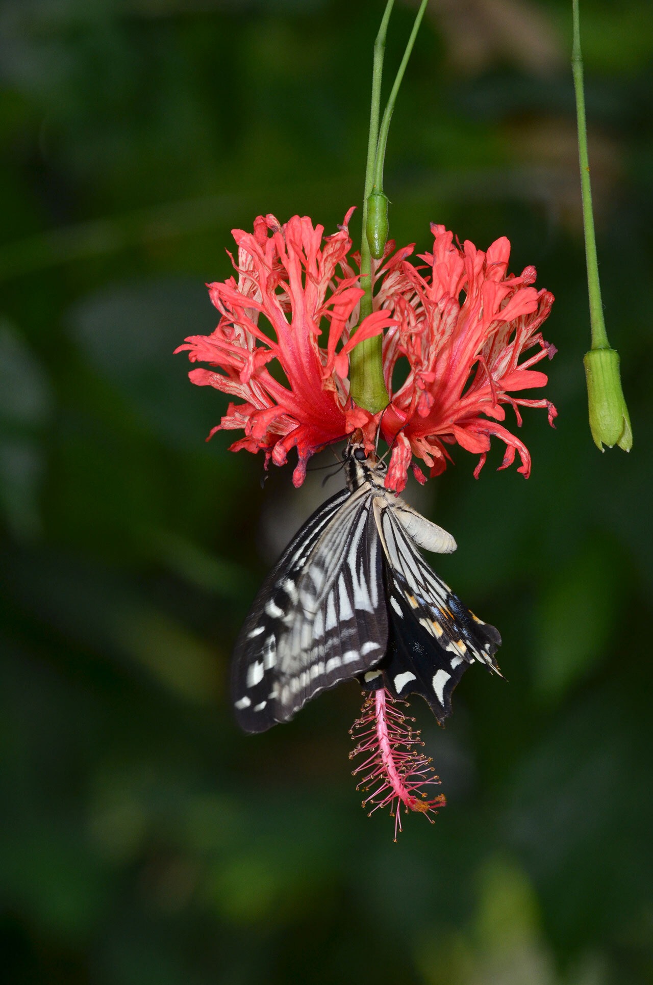 伊丹昆虫館のナミアゲハがフウリンブッソウゲにとまっているところです。