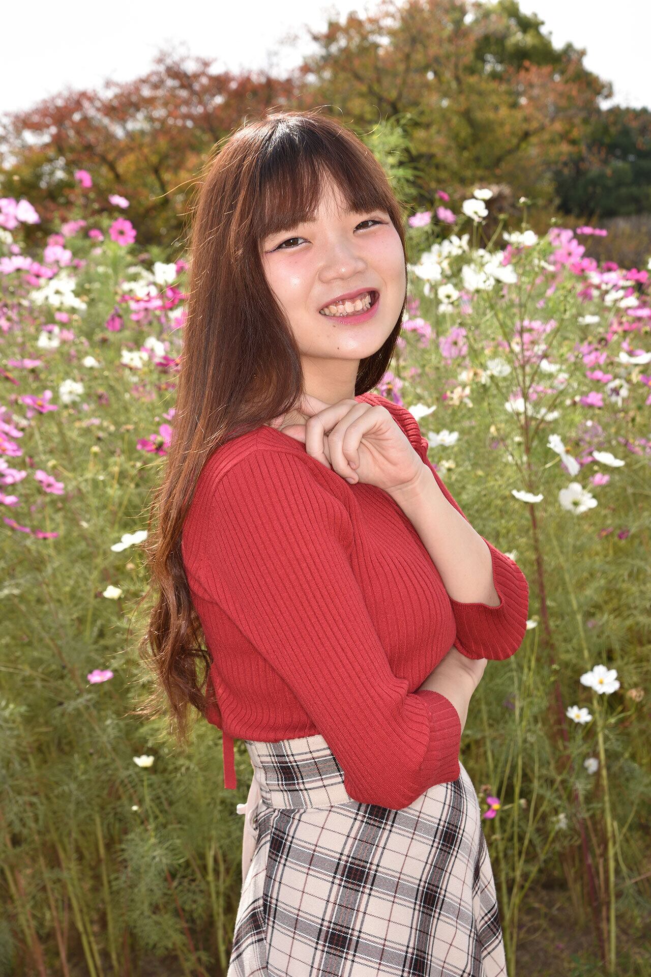 何合那音をコスモス畑で撮影