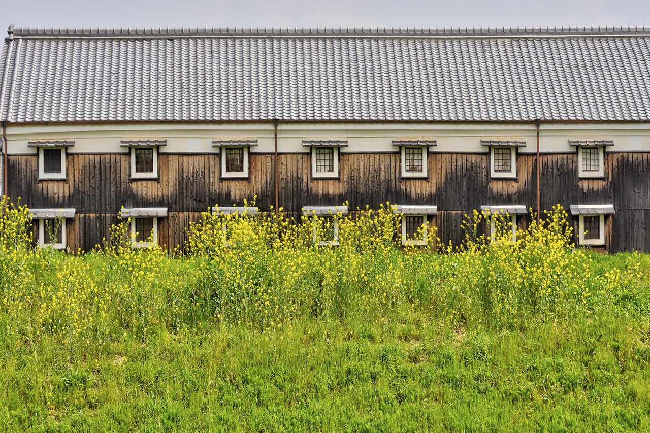 伏見桃山の酒造会社を菜の花を手前に写しました。