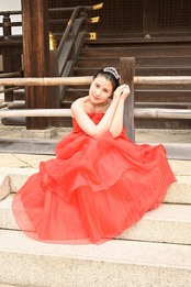 ウエディングドレスの上原実祐。京都、石清水八幡にて。